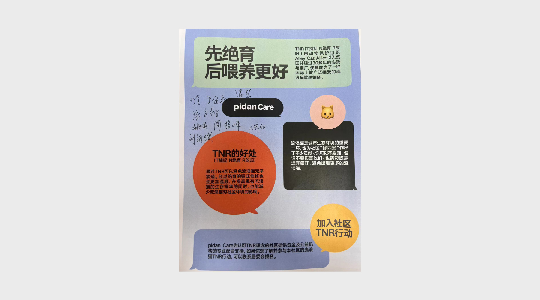 ピダンは猫のための製品を開発し、ピダンケアは猫を助けています。ピダン製品1点の販売につき0.15元が、野良猫の救助活動のためのピダンケア慈善口座に寄付されます。