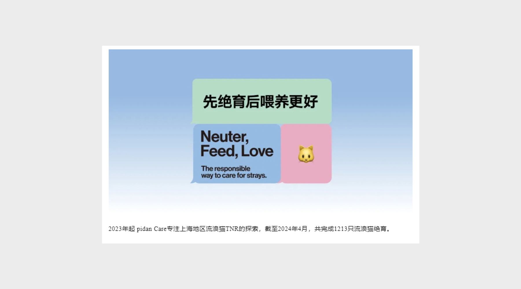 pidan Care cooperated with Panghu Stray Animal Welfare Association to complete the sterilization of 7 stray cats in Mingfeng Shijiyuan.