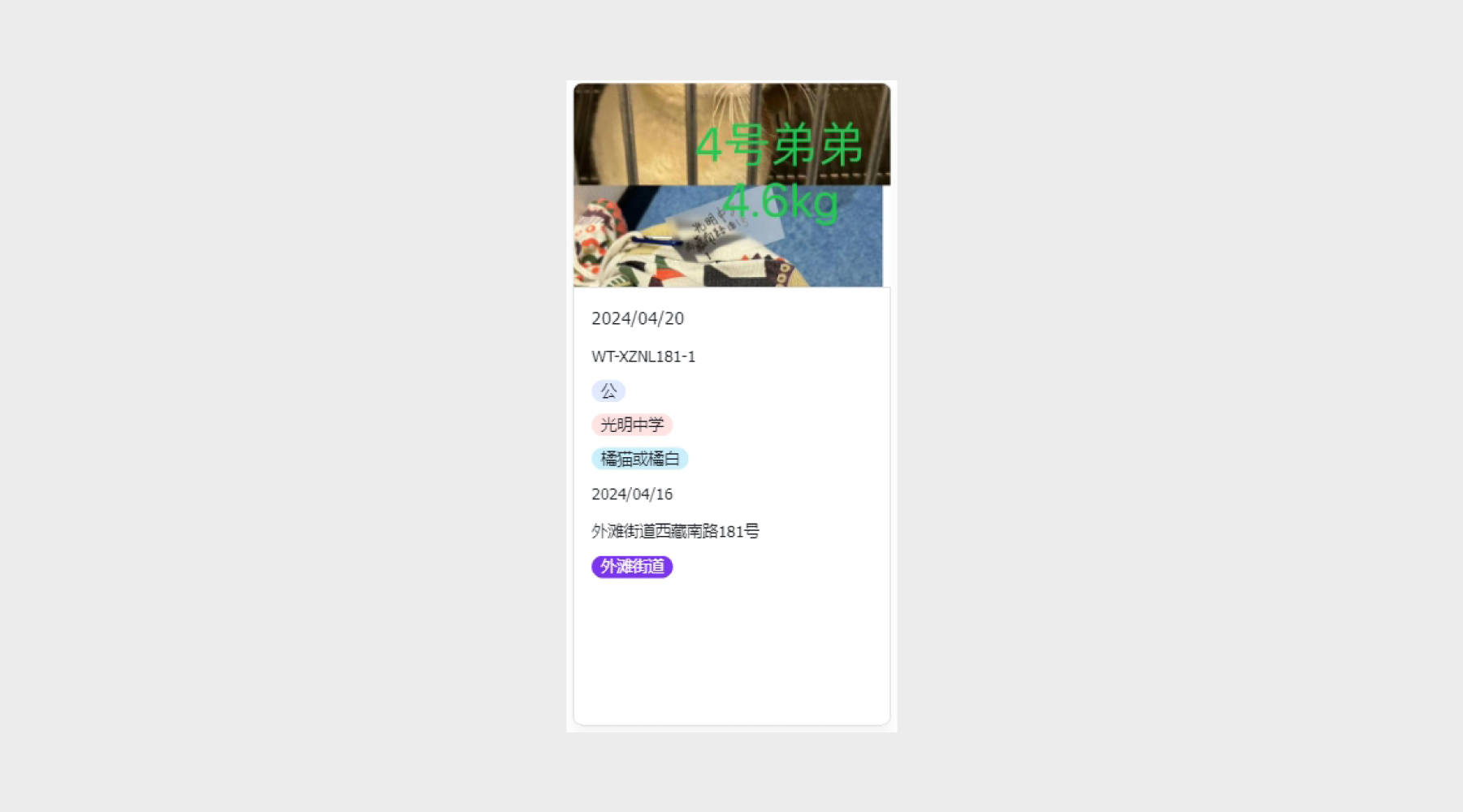 pidan Care cooperated with Two Tails to complete the sterilization of 1 stray cat in Guangming Middle School.