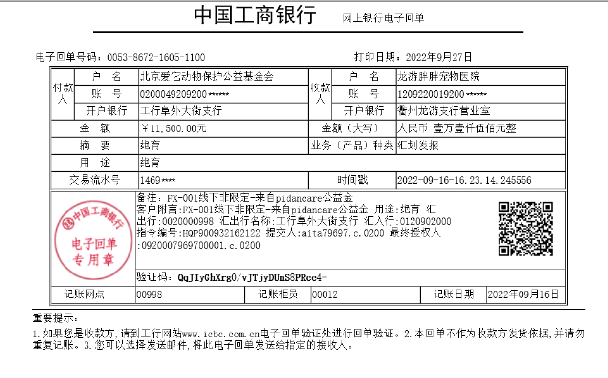 Sterilization Support/11,500 CNY in Cash