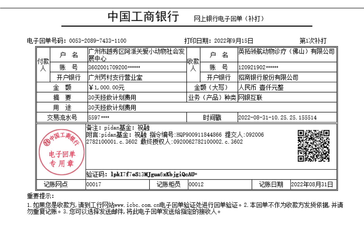 Sterilization Support/5,650 CNY in Cash