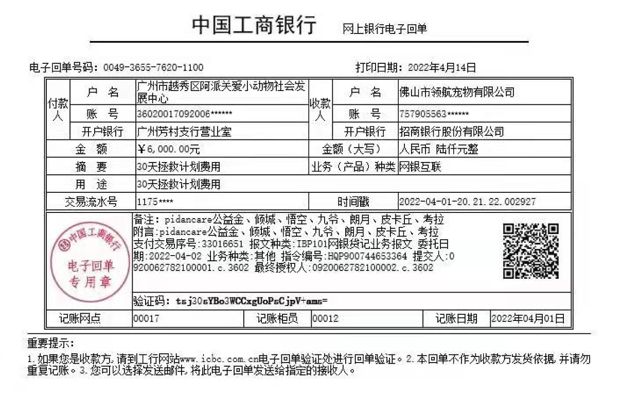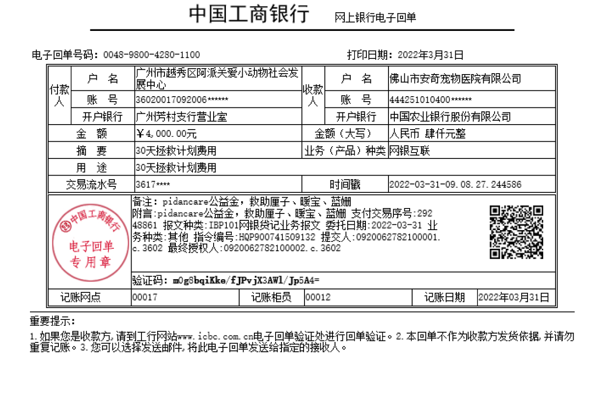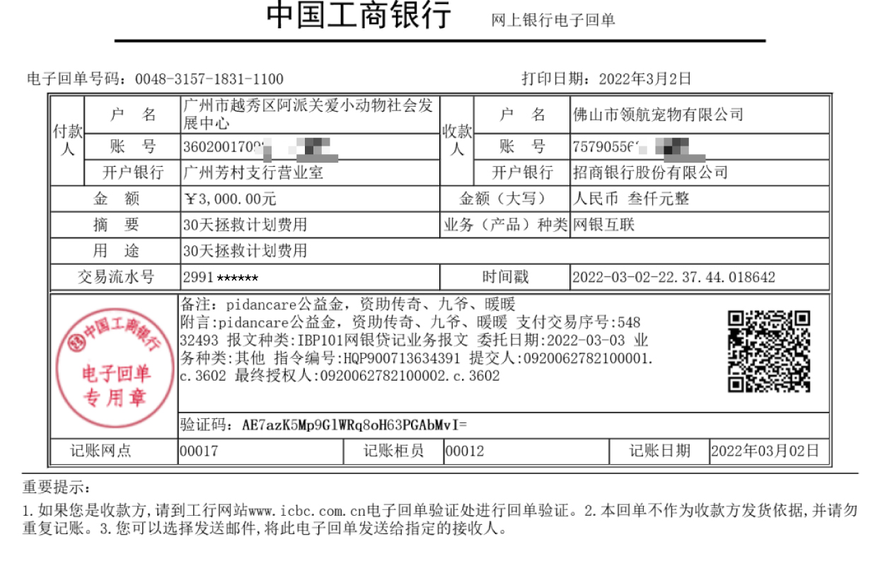 Dog Langyue suffered from multiple fractures due to the crash by a vehicle, and was rescued on Mar. 1, 2022 and treated.