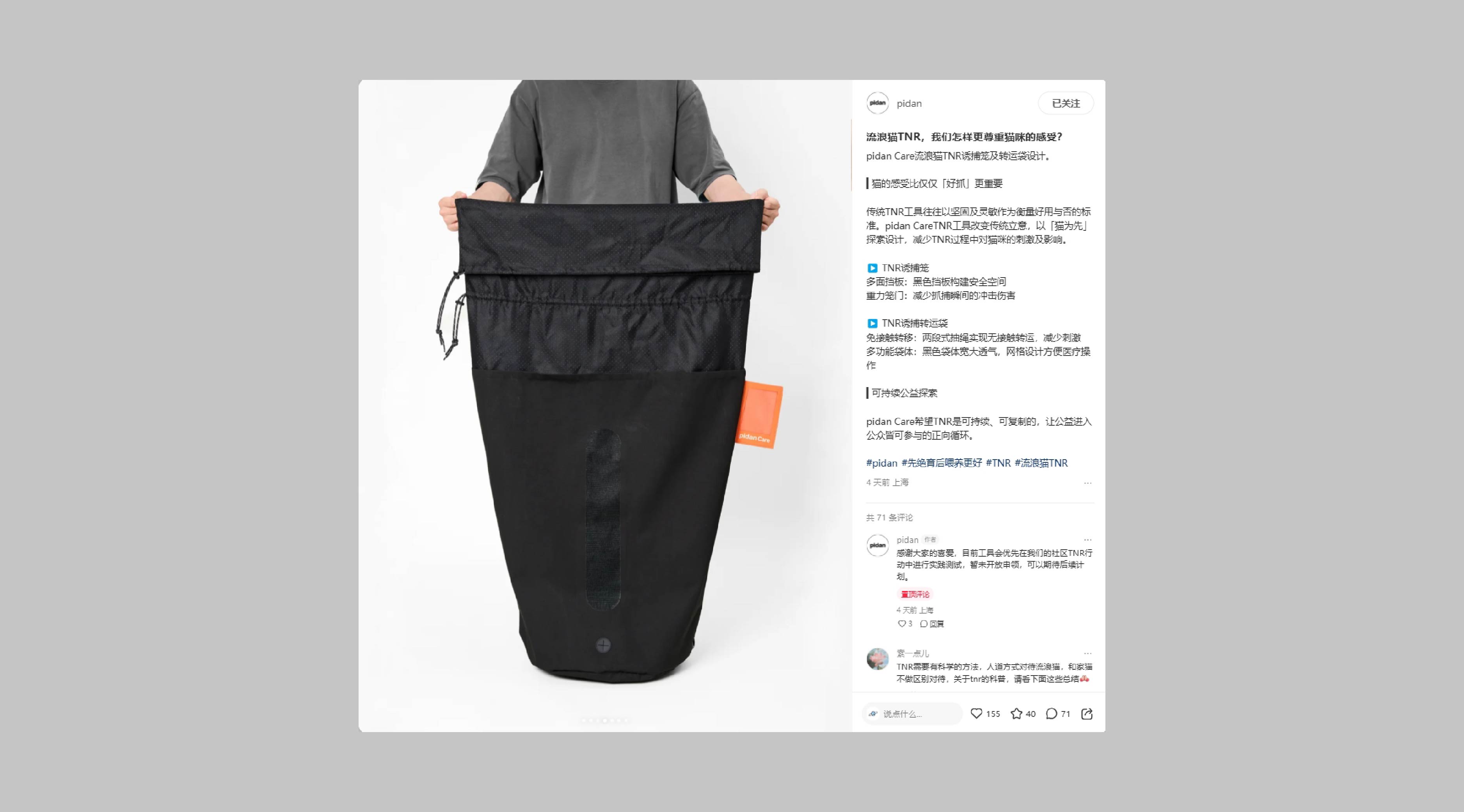 ピダンは猫のための製品を開発し、ピダンケアは猫を助けています。ピダン製品1点の販売につき0.15元が、野良猫の救助活動のためのピダンケア慈善口座に寄付されます。