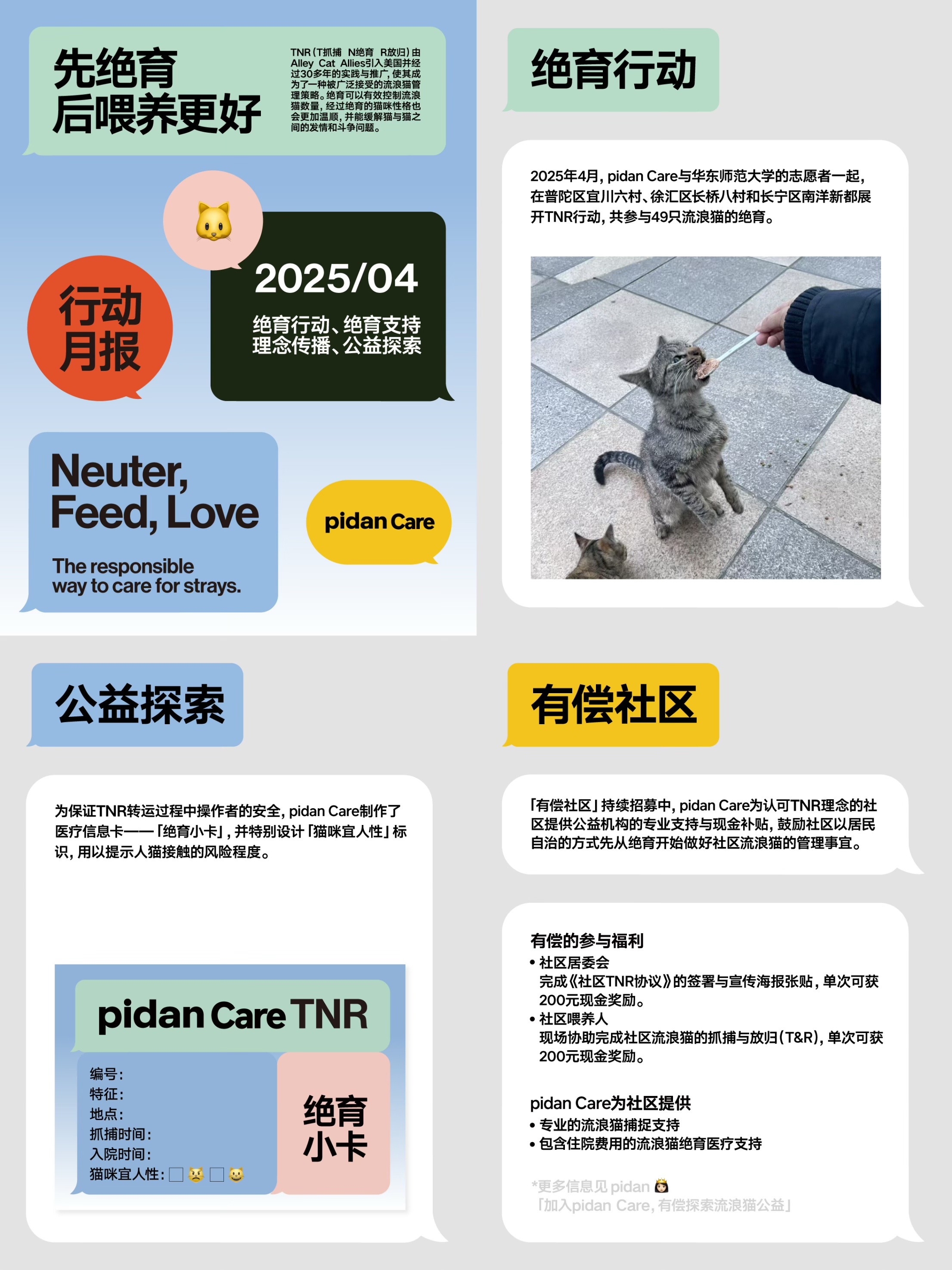 pidan creates products for cats, and pidancare helps cats. For every pidan product sold, 0.15 CNY will be credited to the pidancare charity account for the rescue of stray cats.
